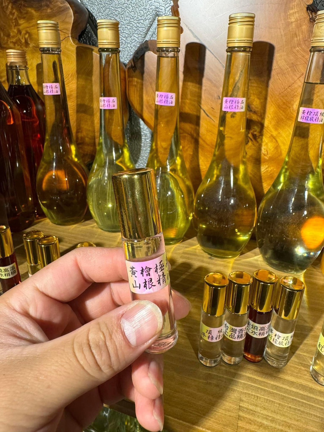 有些黃檜精油會帶有「老味」、「古物味」、「佛堂香」等描述,是因其木質老化與天然油脂氧化後的沉穩氣息。