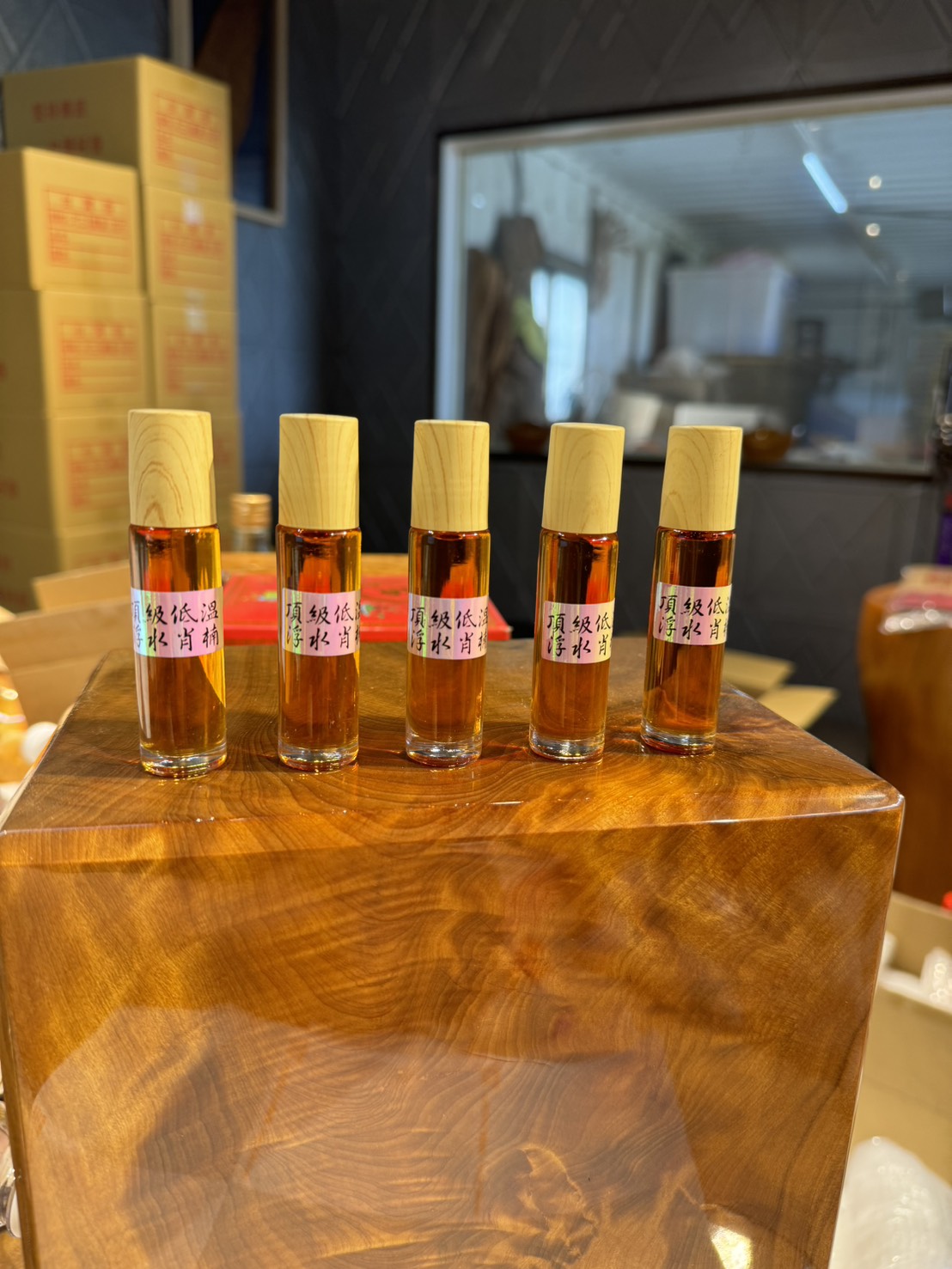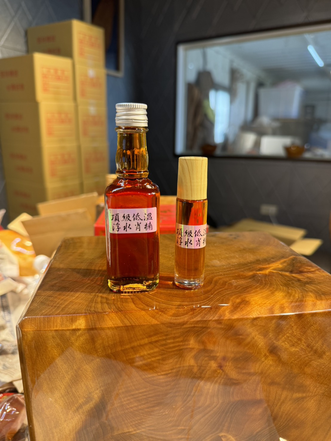 質地與顏色:浮水梢楠精油呈琥珀色,質地較為輕盈,流動性較好。